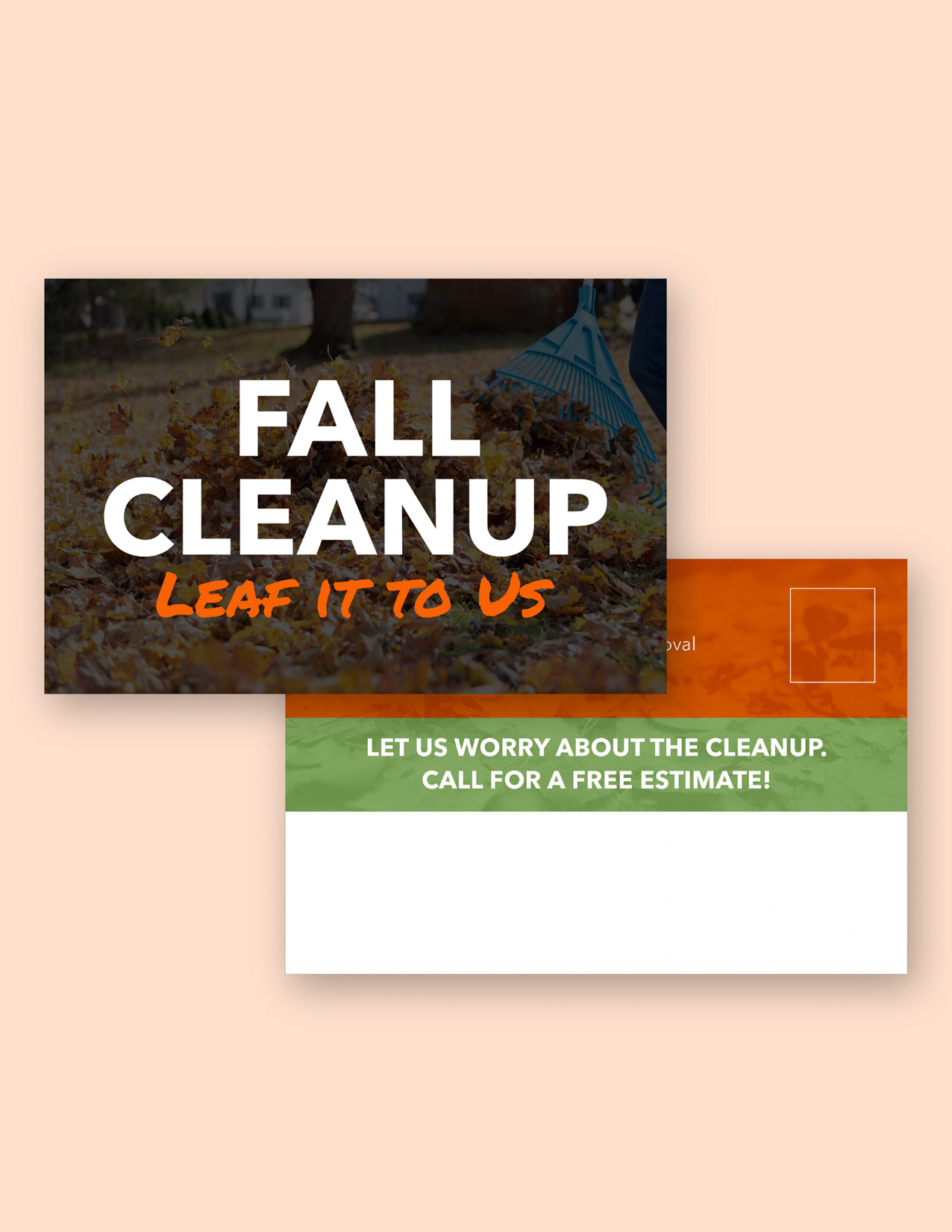 Fall focused postcard with list of services. Download this print-ready file and take it to your printer! Don't forget to customize it by adding your contact details.Size: 6in x 4in